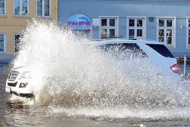 BEFORE You drive away You should be aware that You are entering an electric car. Meaning this car has two batteries. The 12V-additional battery won't do You harm. The 400V-battery is a high power high voltage pack. And this one can harm You, so You better avoid the risk! When regular cars easily pass a flooded part of the road You better don't: You keep standing and wait until the water-level drops sufficently!!